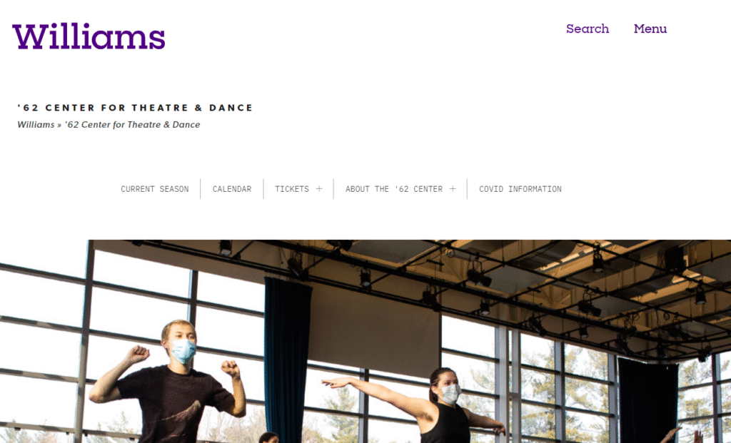 The students, faculty, and staff of the ’62 Center are excited to welcome the general public to all our performances and events. COVID-19 remains an urgent health concern that requires us to continue preventative policies for the safety of our community. All patrons are required to wear a well-fitted mask and are expected to be fully vaccinated.