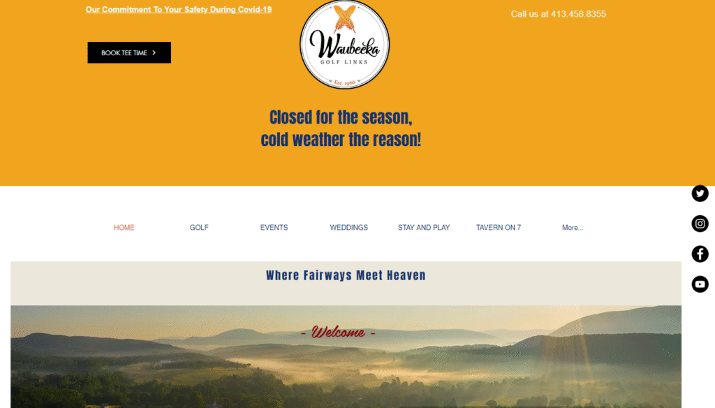 Waubeeka Golf Links is the perfect place for you to hold your wedding, mimosa breakfast, rehearsal dinner or party. Nestled in-between Mount Greylock and the Taconic Range, with the Green River flowing through the course, Waubeeka offers breath taking sunsets and a wonderful background for your special moment. We offer in house catering with our own professional chef. To view our full banquet menu, click here. You truly will understand why our catchphrase is “It’s always a beautiful day at Waubeeka“. Read More
